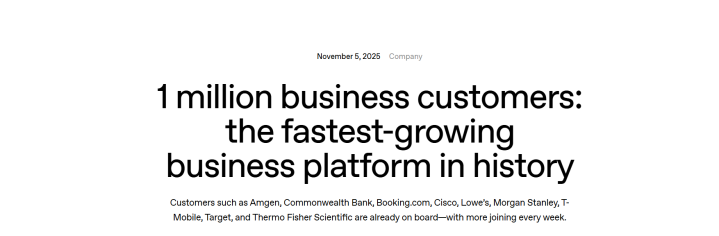 OpenAI官宣: 全球企业客户突破100万 席位数量超700万